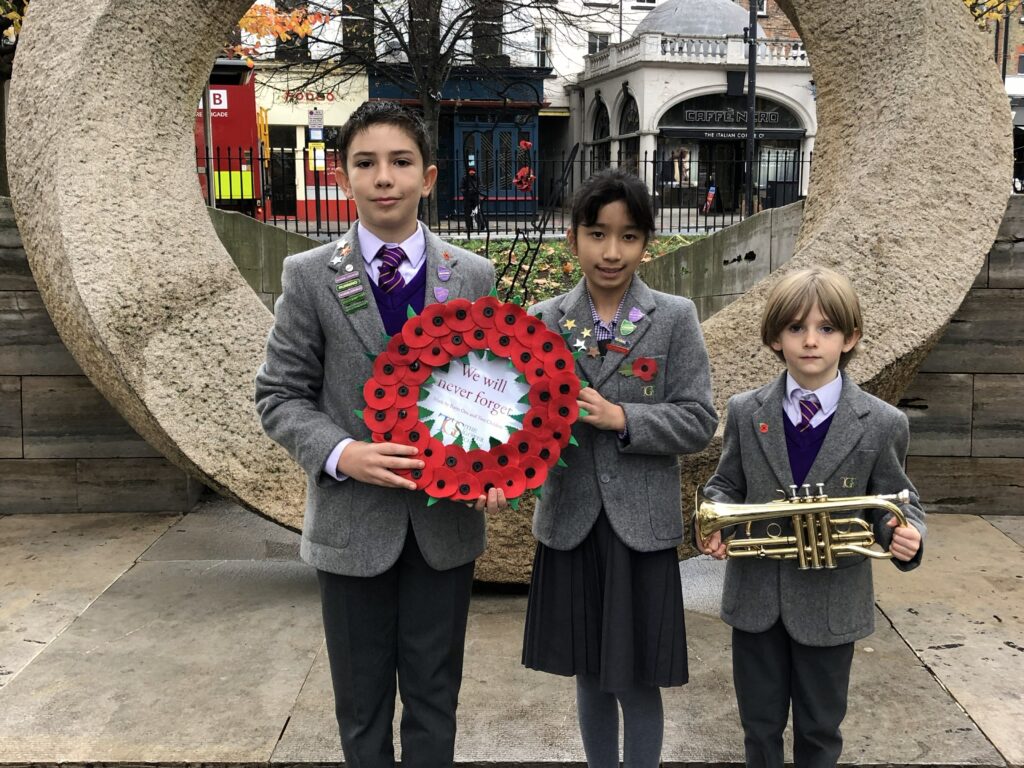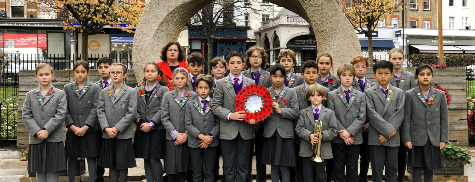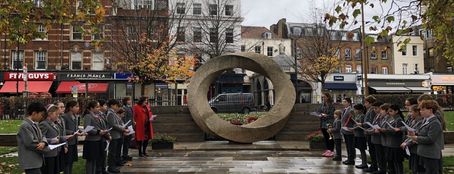 On Friday, 7th November, Principal Emma Gowers invited Form 6 children to Islington Green War Memorial to participate in a private ceremony marking Remembrance Day. The programme included the singing of the National Anthem, observing two minutes of silence, listening to a Form Three boy perform ‘The Last Post’ on his trumpet, and finally, a reading of the third and fourth stanzas of the poem ‘For the Fallen’ by Laurence Binyon.